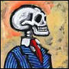 Description: Ed in his fancy purple suit on a background of yellow silk
